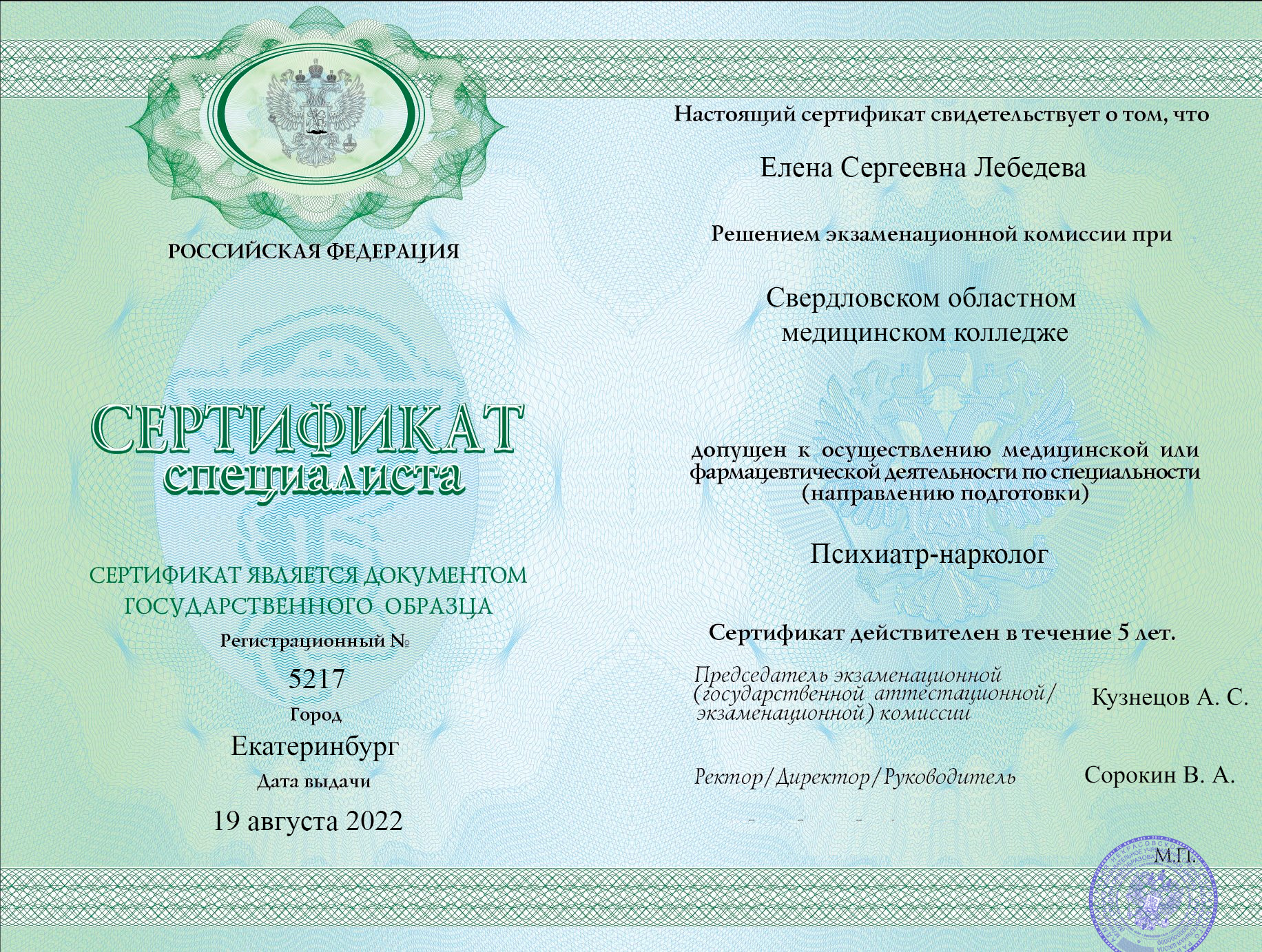 Елена Сергеевна Лебедева врач нарколог клиники доктора Стукаловой в Константиновке